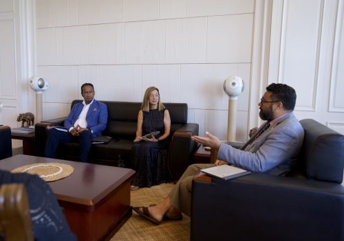 Na’e faingamalie ‘a e Pule Lahi ‘o e ‘Univesiti Canterbury, Palofesa Cheryl de la Rey fakataha mo Palofesa Steven Ratuva, Tokoni Pule (Pasifiki), mo e ni’ihi ‘o ‘ene kau ngaue, ke fakafe’iloaki ki he ‘Eiki Palemia, Lord Fakafanua he pongipongi ‘o e ‘aho ni. Na’e fakamalo’ia’i ‘e he ‘Eiki Palemia ‘a e Pule Lahi mo ‘ene kau ngaue ‘i he faingamalie ‘a’ahi mai ki Tonga ni pea mo e felotoi ke hokohoko atu e fengāue’aki ke fakalakalaka ‘i he ngaahi ‘elia ‘oku fiema’u. Na’a ne fakamamafa’i ‘a e mahu’inga ke teuteu’i ‘a e to’utupu ‘o fakatatau ki he ngaahi fokotu’u fakalakalaka ‘a e Pule’anga, koe’uhi ko e ngaahi ngaue’anga ‘o e kaha’u .